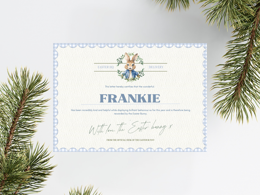 Personalised Easter Bunny Certificate